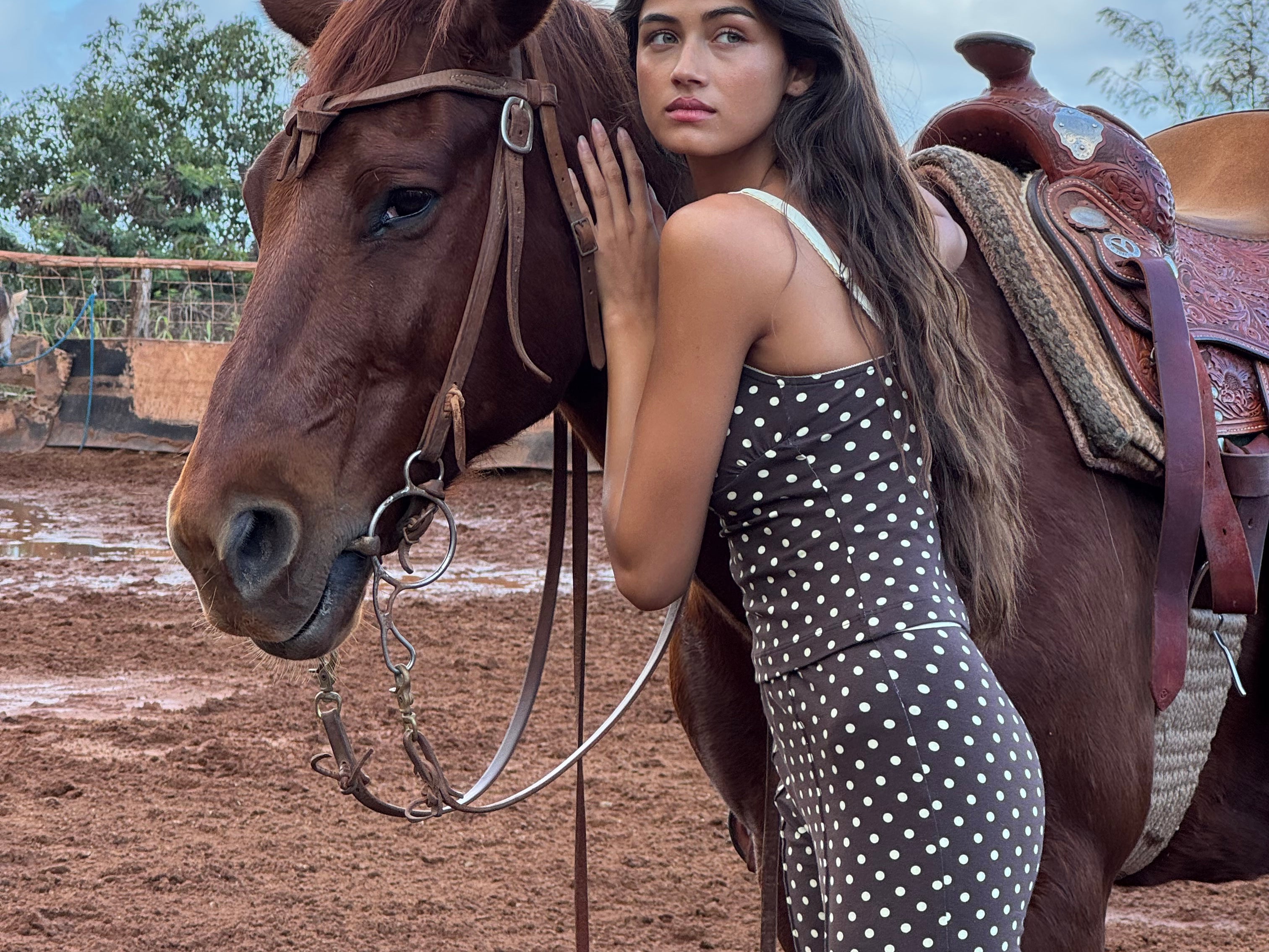 The 1/2” elastic straps are fully adjustable and designed with a subtle taper in the back to help them stay securely in place. Gentle under bust ruching offers shaping and support, while the waist narrows slightly to create a flattering silhouette. Made from our signature soft, breathable organic cotton knit, it’s finished at a mid length for easy styling with our matching tailored crop pant (product linked) or your favorite bottoms.