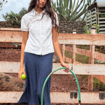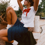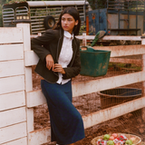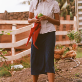 Our midi slip skirt is crafted from soft, drapey Tencel™ and cut on the bias for a naturally flattering silhouette. Each skirt features contrasting elastic trim, a satin bow at the waist, and is designed for an effortless, vintage-inspired flirty look. Pull it all the way up for a mini shift dress look :)
