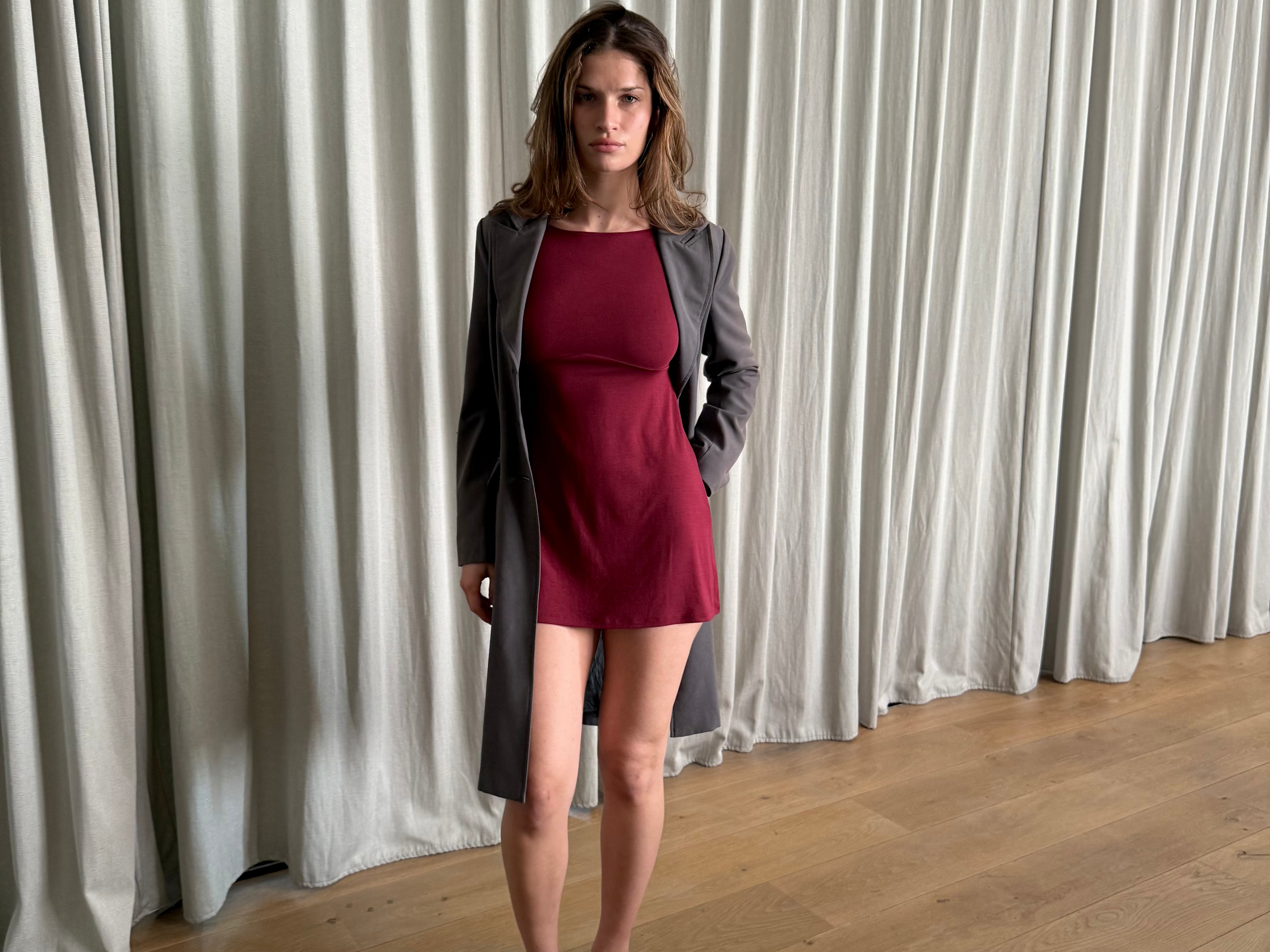 BOATNECK DRESS IN BORDEAUX