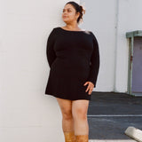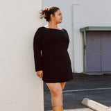 Our new mini dress is made from silky soft, lightweight eco-TENCEL™ that drapes beautifully on the body. Designed with an easy, flattering fit, it features long sleeves, a smooth boat neckline, and a contour seam under the bust for subtle shape. The mini-length skirt has a relaxed, effortless feel—comfortable enough for everyday wear, polished enough for going out. A versatile staple you can dress up or down all season long.