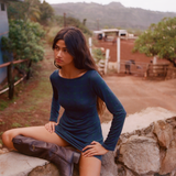 Our best selling mini dress is made from silky soft, lightweight eco-TENCEL™ that drapes beautifully on the body. Designed with an easy, flattering fit, it features long sleeves, a smooth boat neckline, and a contour seam under the bust for subtle shape. The mini-length skirt has a relaxed, effortless feel—comfortable enough for everyday wear, polished enough for going out. A versatile staple you can dress up or down all season long.
