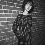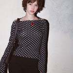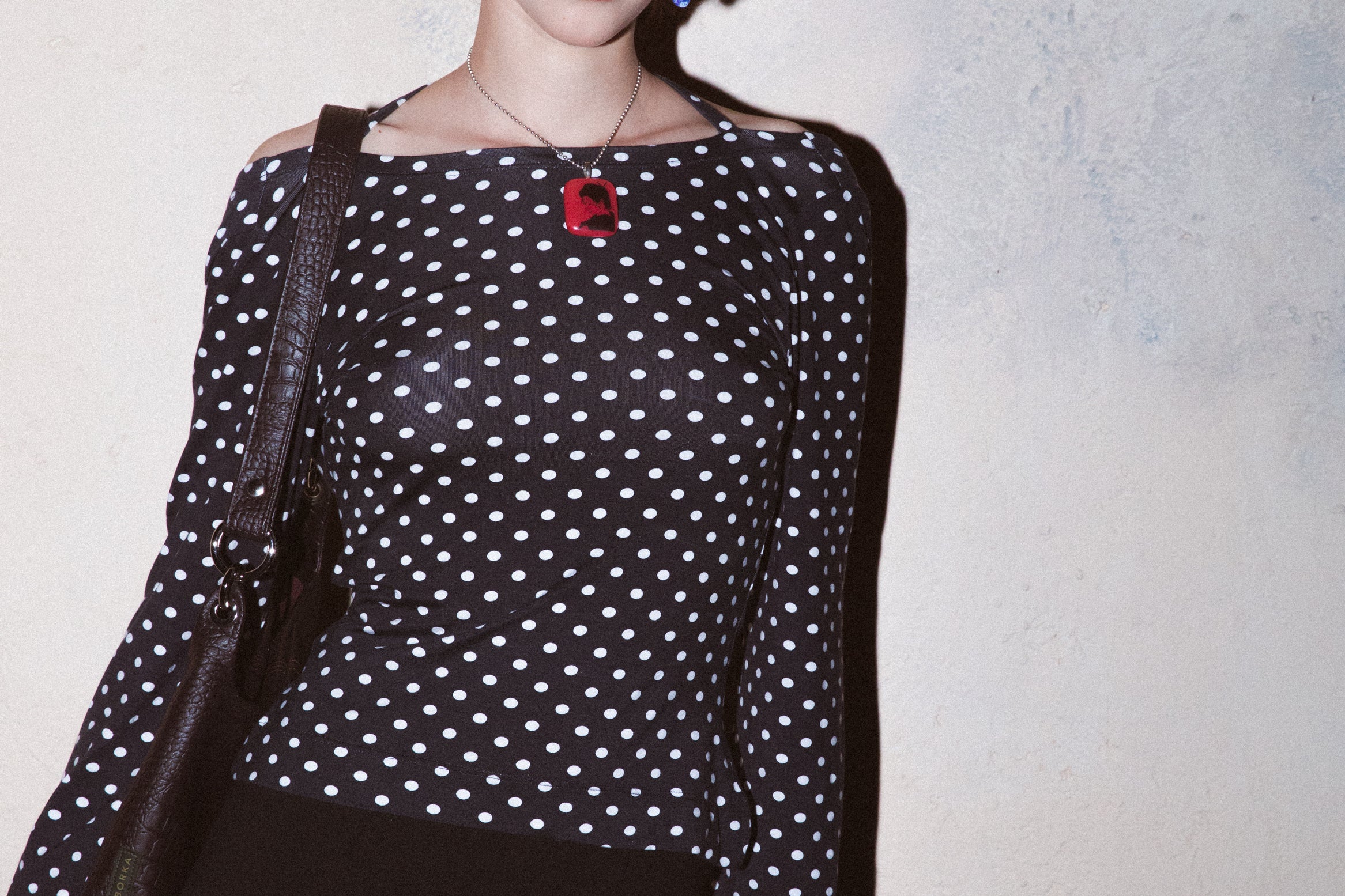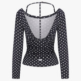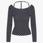 COWL BACK LONG SLEEVE IN DOMINO DOT