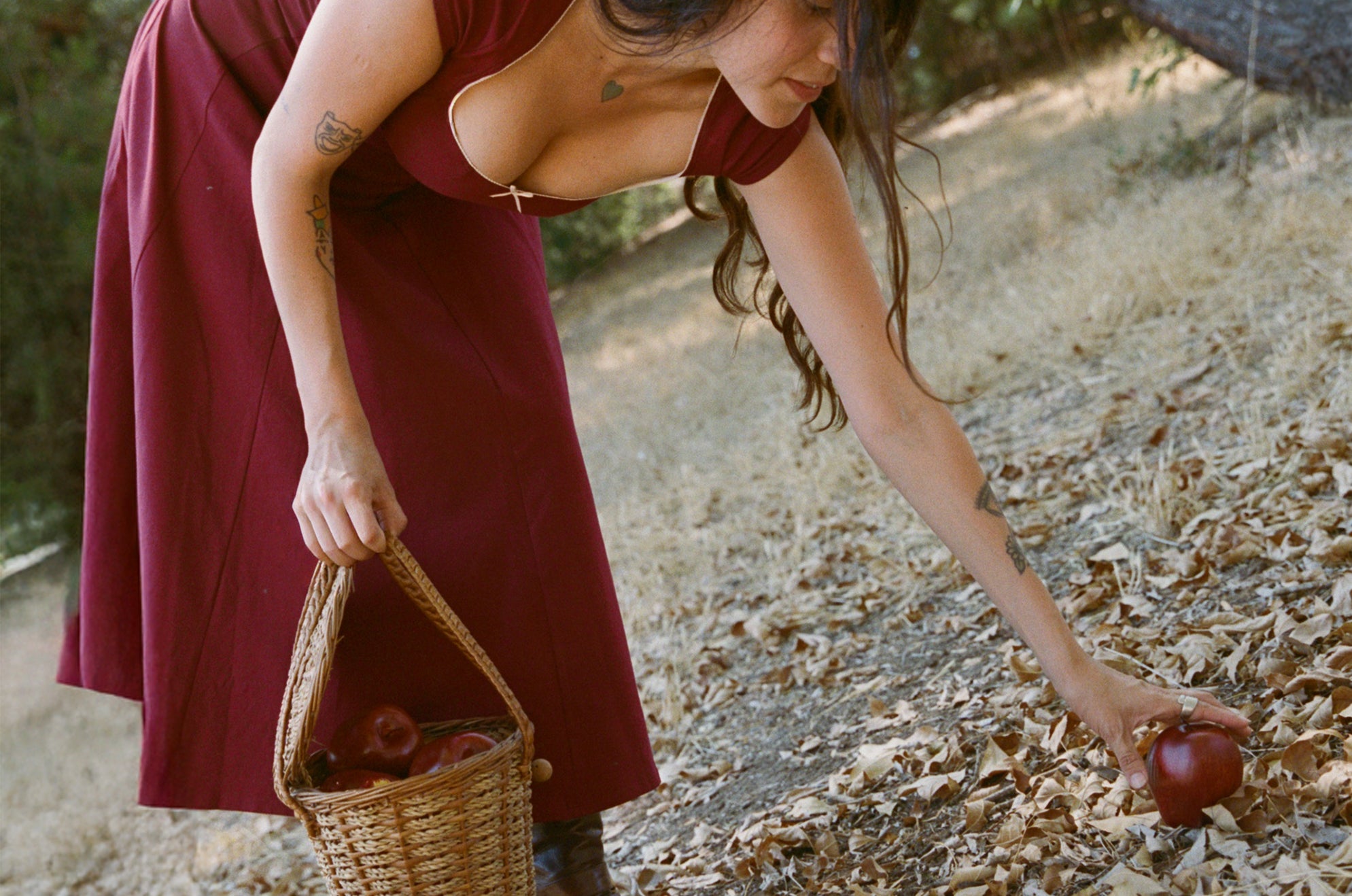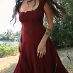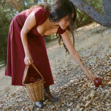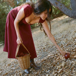 Our Bordeaux Dream Dress is made from thick, soft, breathable organic cotton. Designed with supportive paneling inspired by vintage corset covers and the skirt shape from our best-selling Dream Skirt, this style offers both comfort and structure.