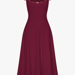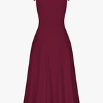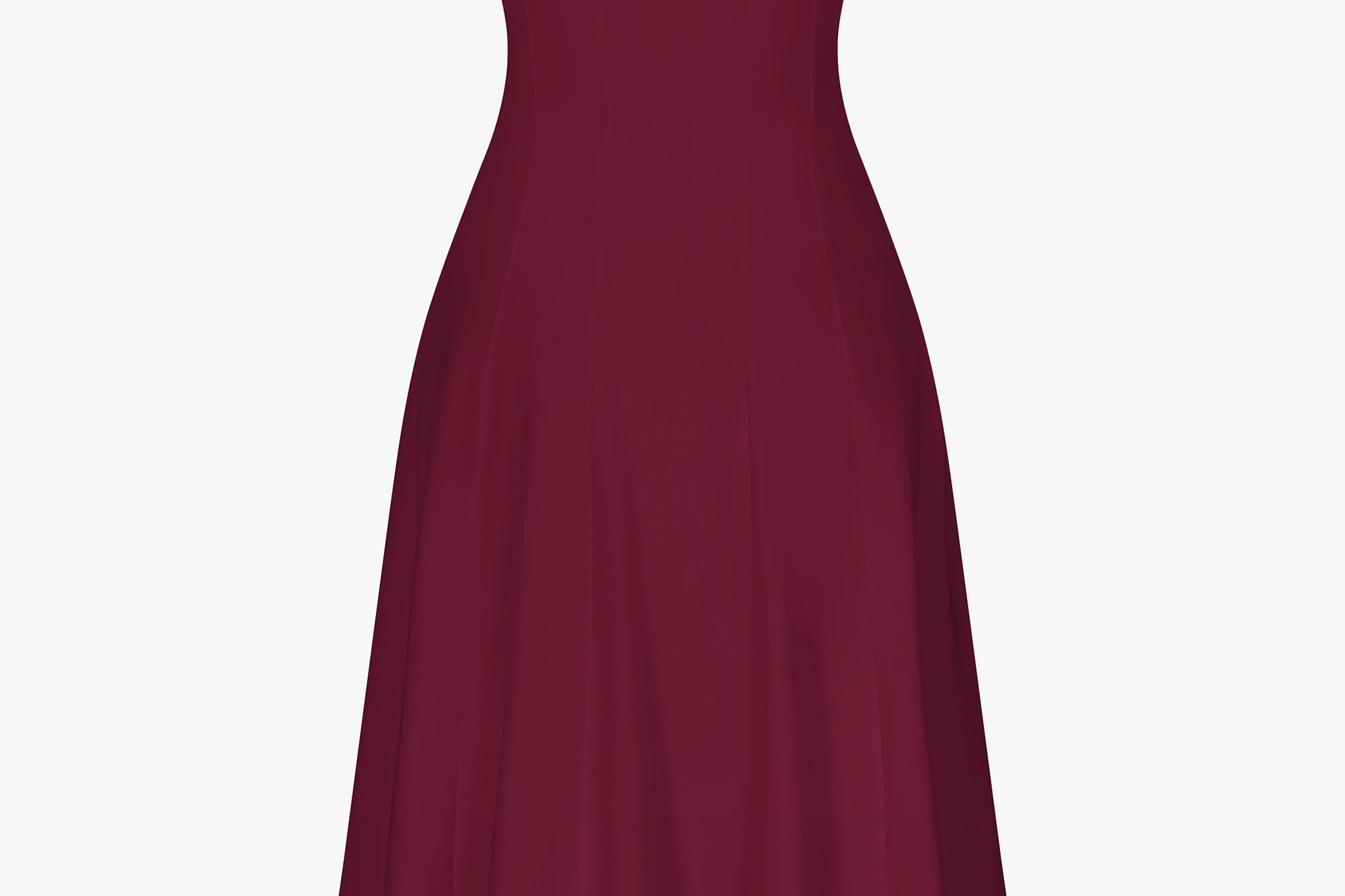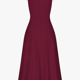 The deep square scoop neckline flatters the collarbone, while sizes 2X and 3X have a slightly higher cut for added support without altering the shape. Fitted through the bust and ribcage, it flares gently from the waist for a feminine drape that falls just below the calf. Supportive, curve-hugging, and maternity-friendly, it’s a versatile piece that transitions seamlessly from day to night.