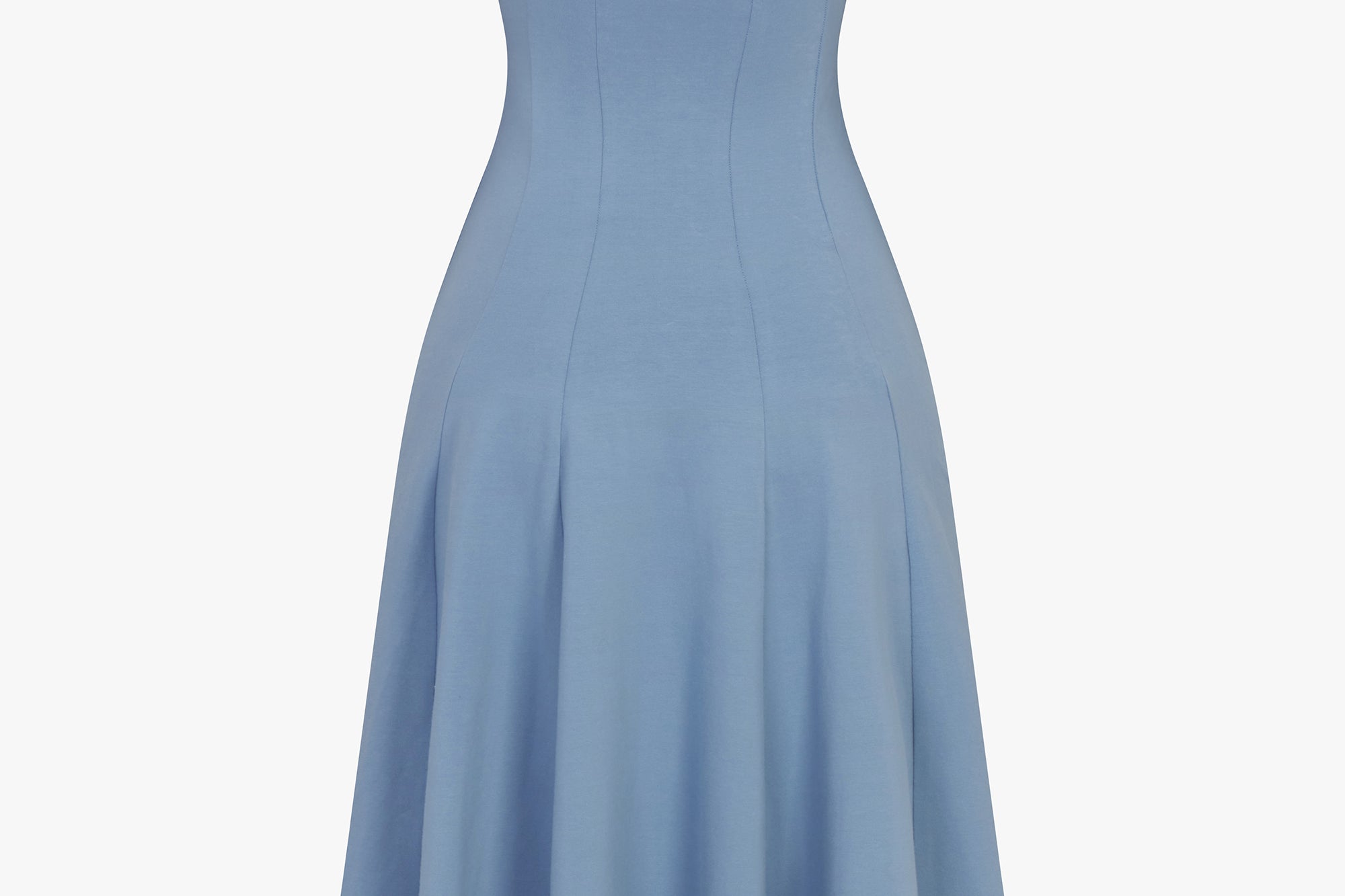 - Flared, mid-length skirt