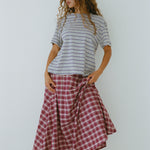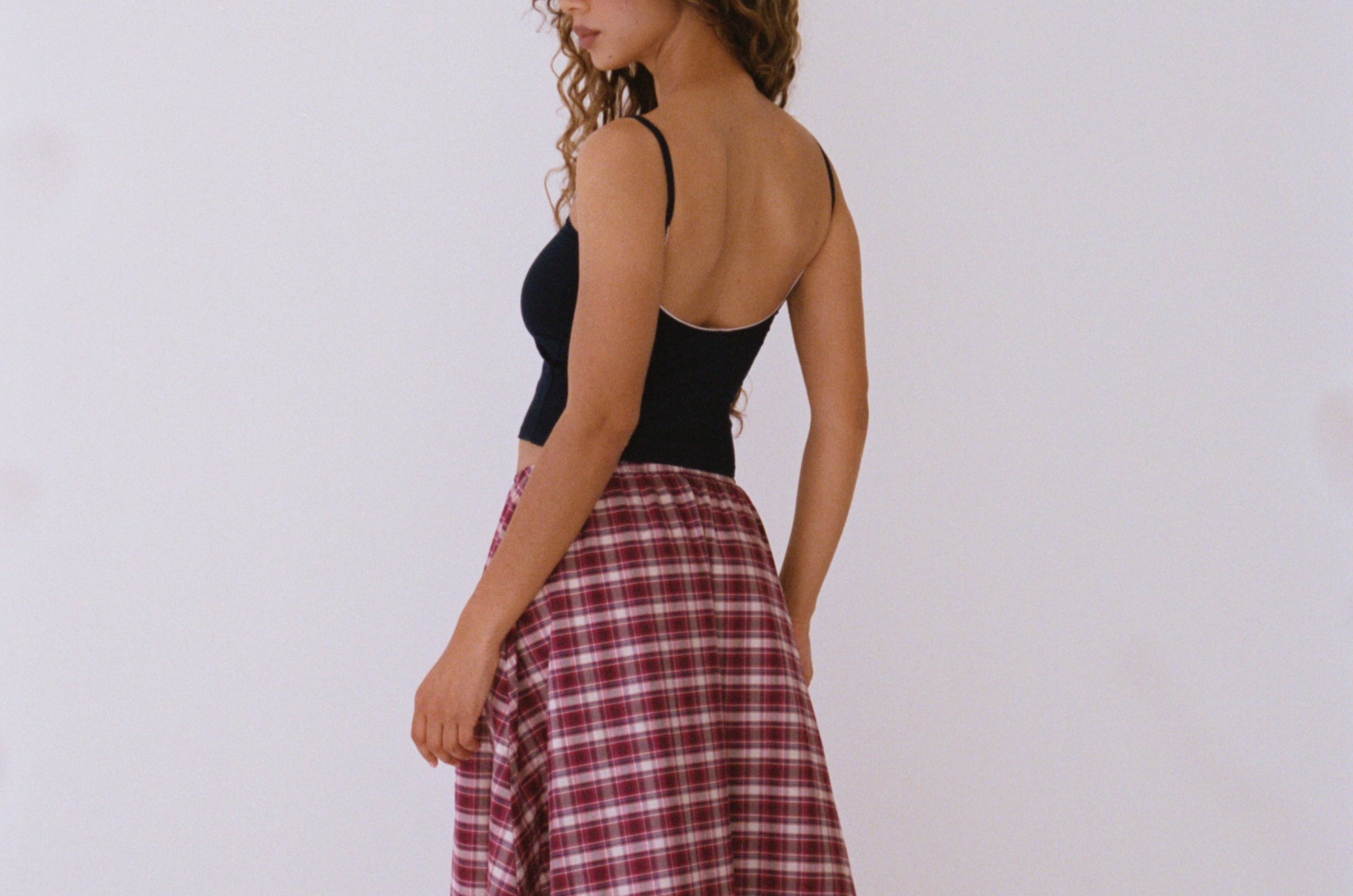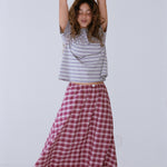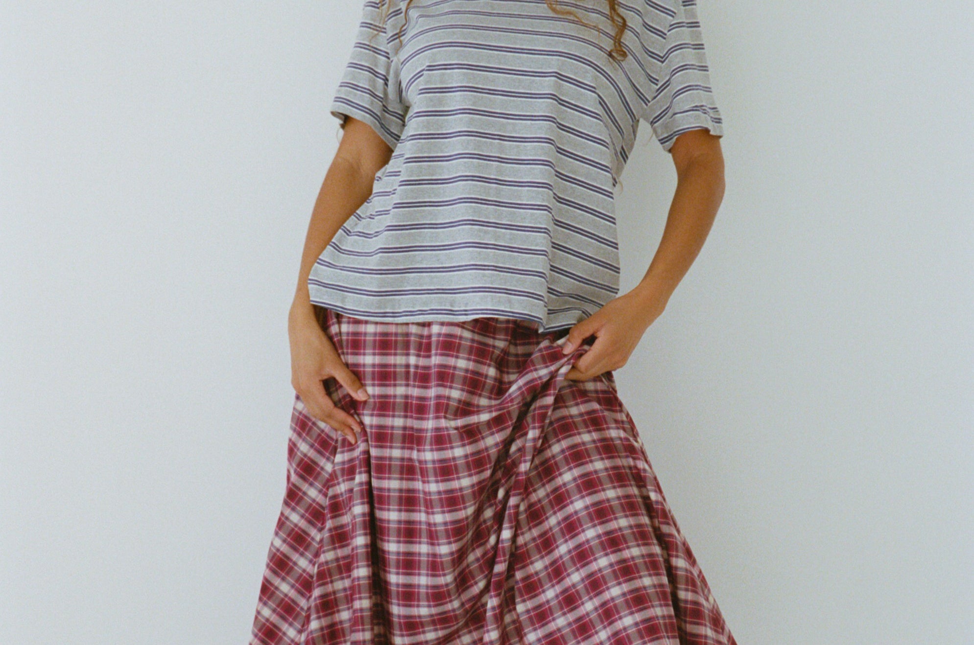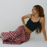The Dream Skirt is an ankle-length style made from over two yards of lightweight, breathable 100% woven cotton. Designed with an elastic waistband, side seam pockets, and a-line skirt, it drapes beautifully to create a flattering silhouette on every body. Wear it high at the waist for a classic look, or lower on the hips for a relaxed fit. Effortless and versatile, it’s easy to dress up or down with a scoop back cami. Ethically made in Los Angeles.