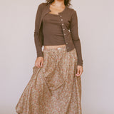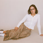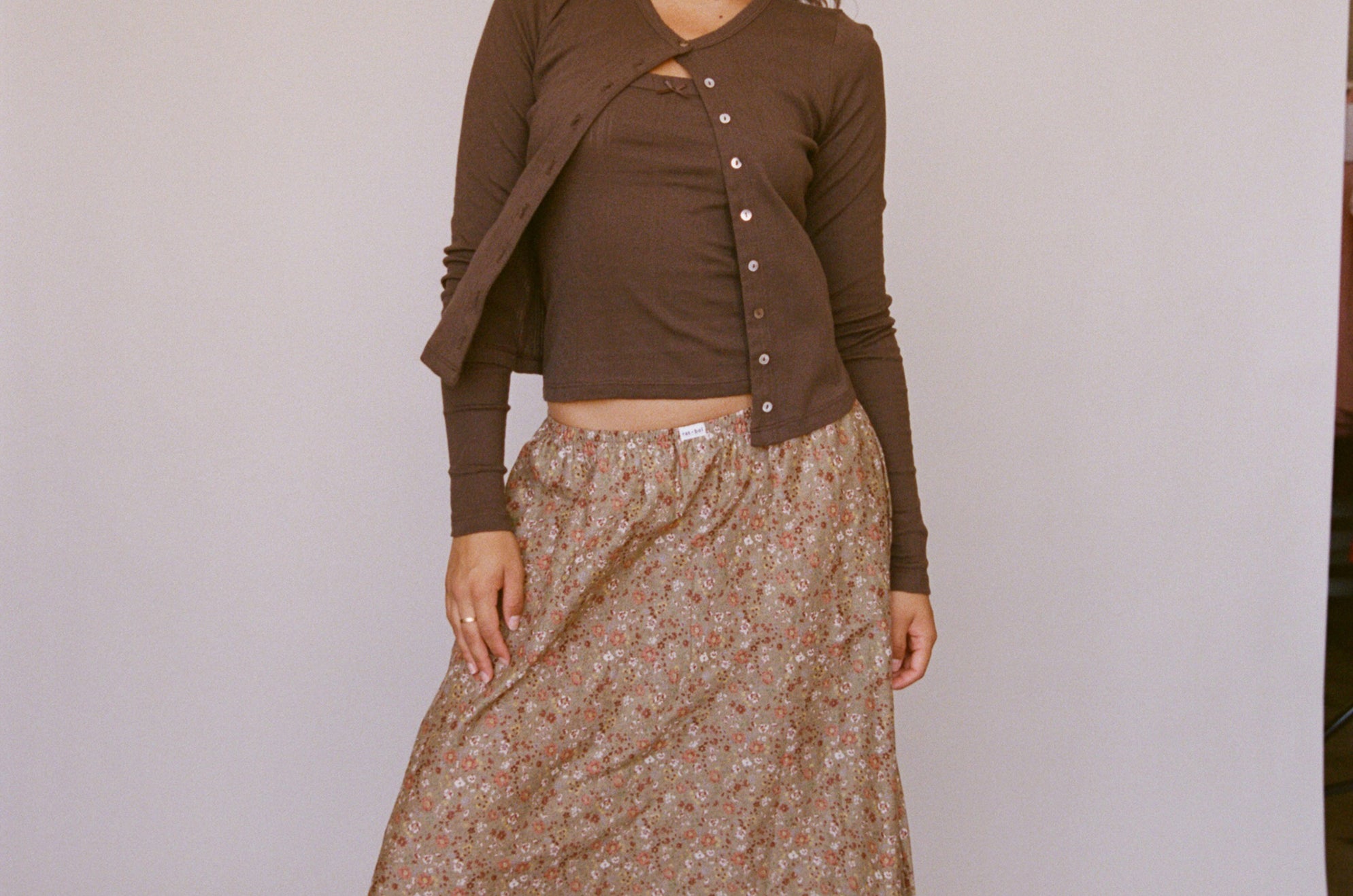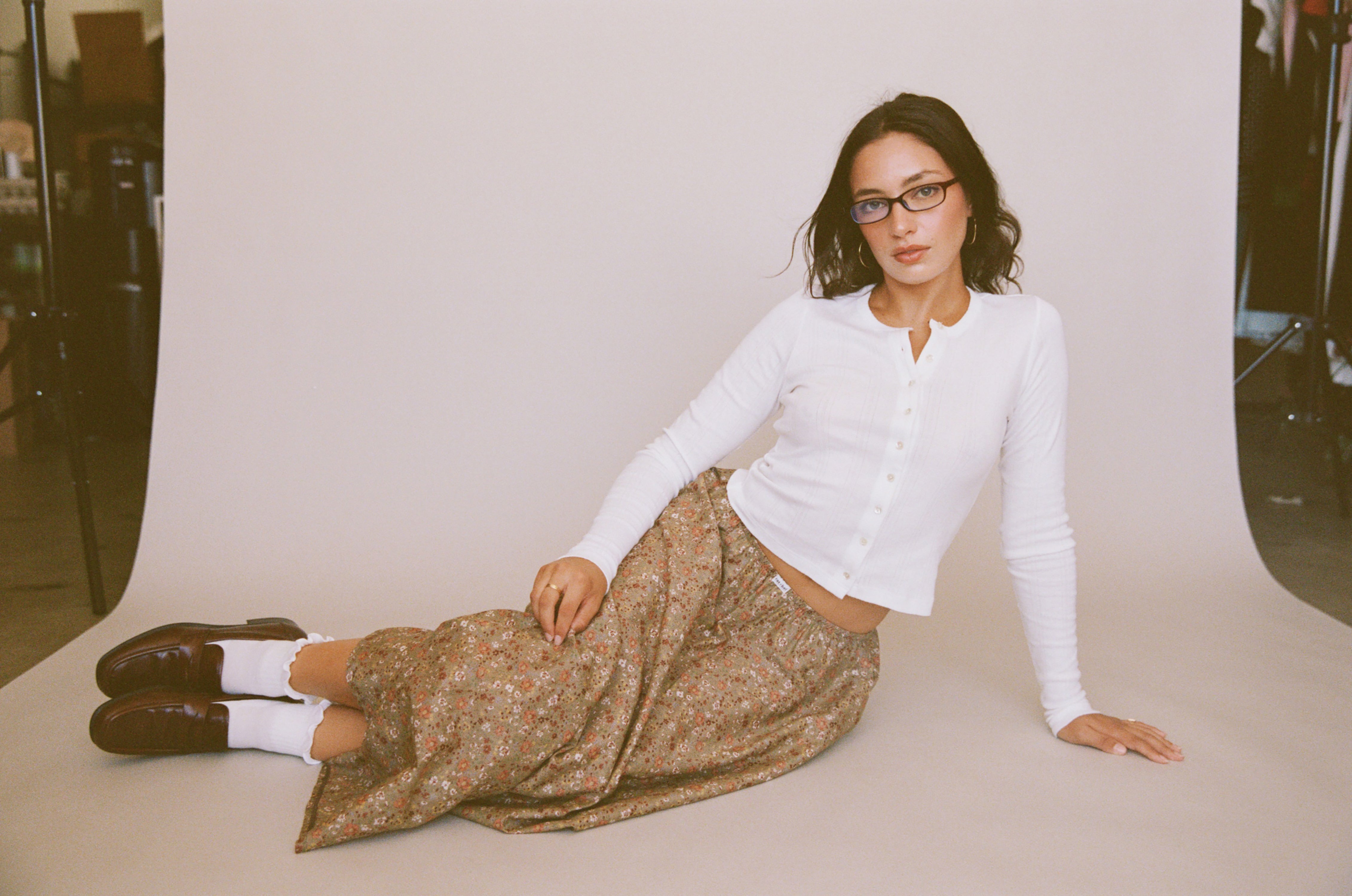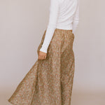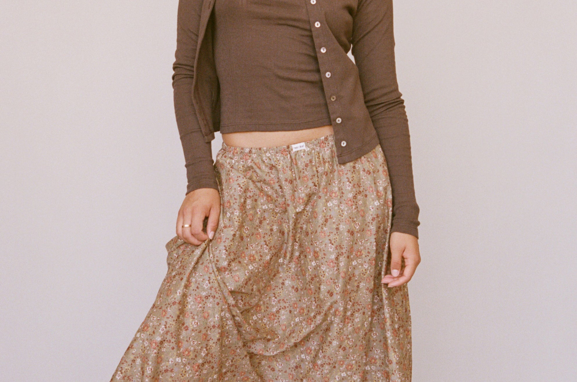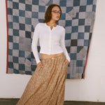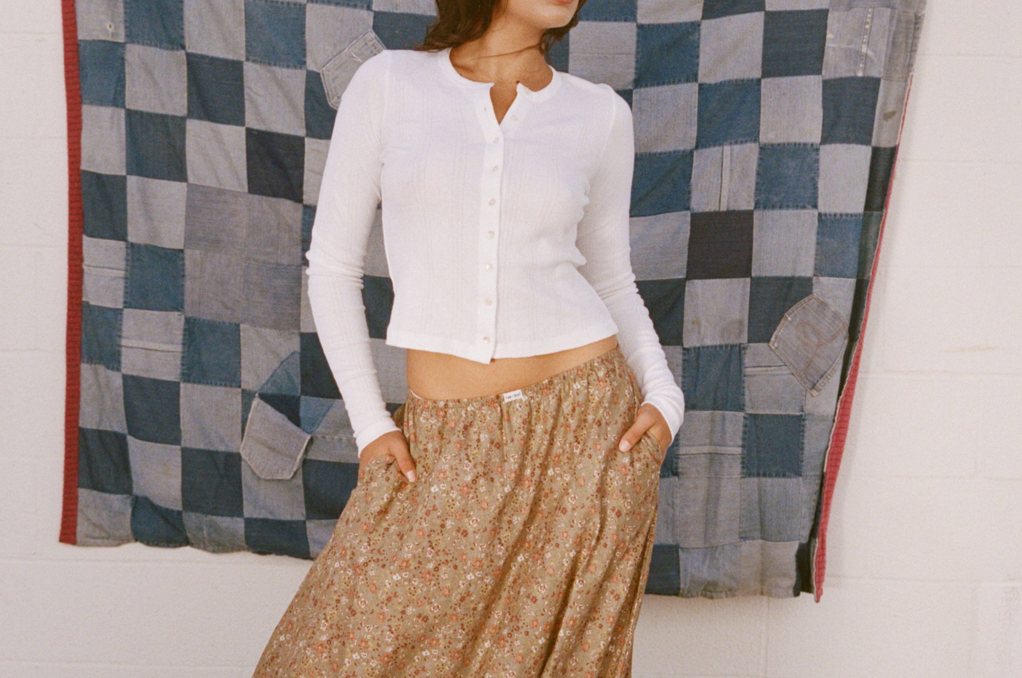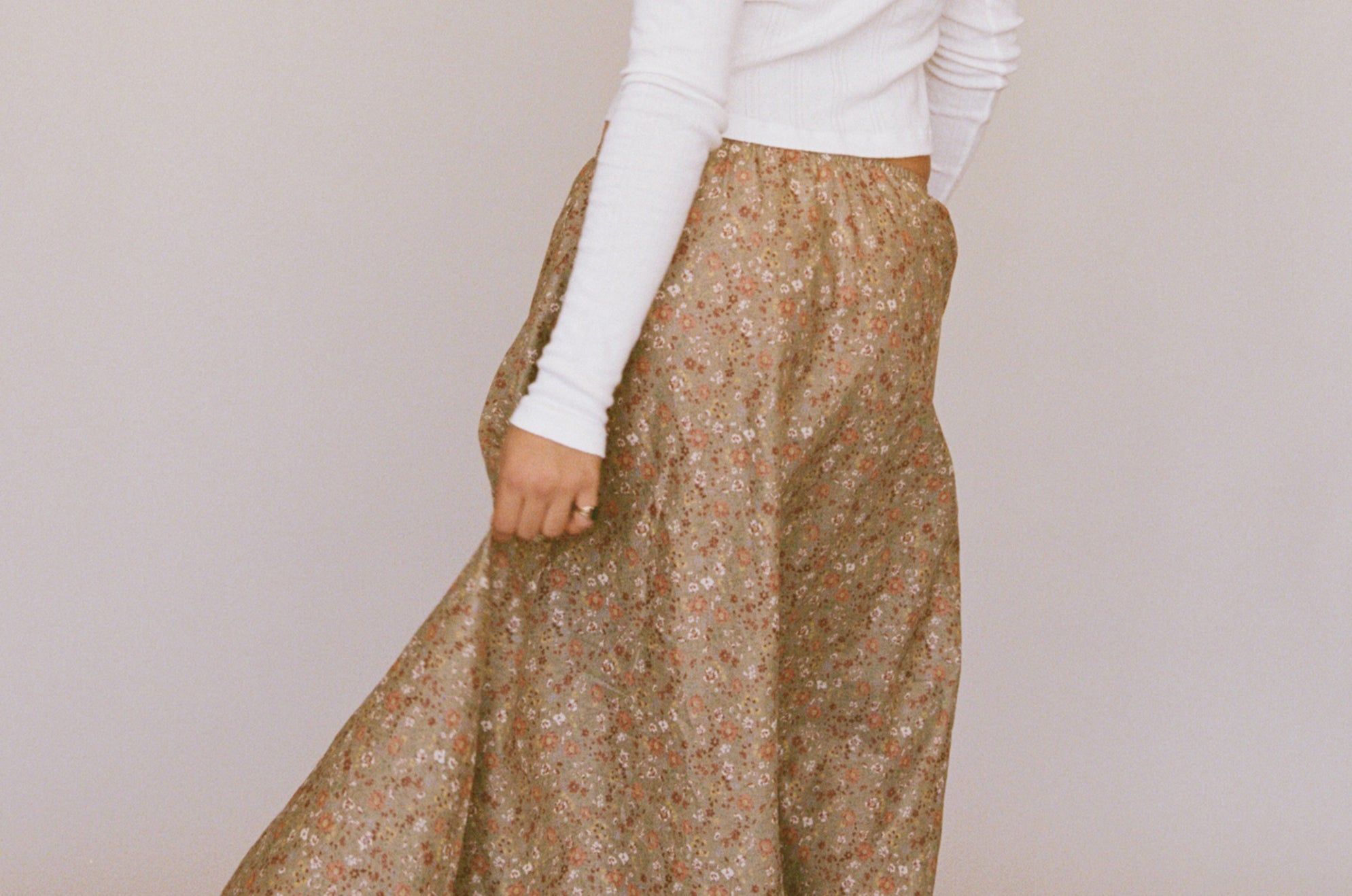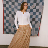 The Dream Skirt is an ankle-length style made from over two yards of lightweight, breathable 100% woven cotton. Designed with an elastic waistband, side seam pockets, and a-line skirt, it drapes beautifully to create a flattering silhouette on every body. Wear it high at the waist for a classic look, or lower on the hips for a relaxed fit. Effortless and versatile, it’s easy to dress up or down with a scoop back cami. Ethically made in Los Angeles.