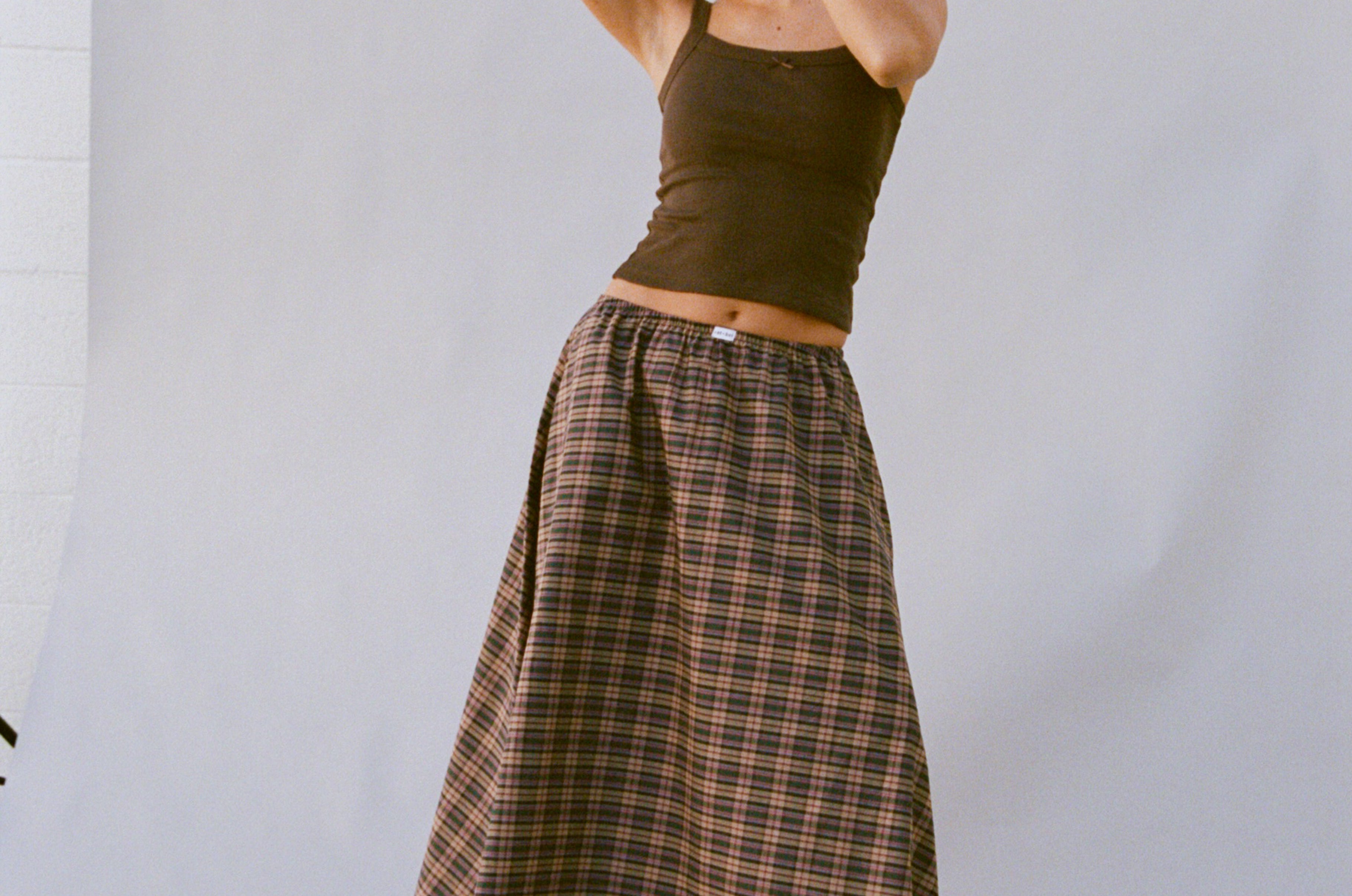 The Dream Skirt is an ankle-length style made from over two yards of lightweight, breathable 100% woven cotton. Designed with an elastic waistband, side seam pockets, and a-line skirt, it drapes beautifully to create a flattering silhouette on every body. Wear it high at the waist for a classic look, or lower on the hips for a relaxed fit. Effortless and versatile, it’s easy to dress up or down with a scoop back cami. Ethically made in Los Angeles.