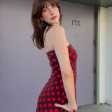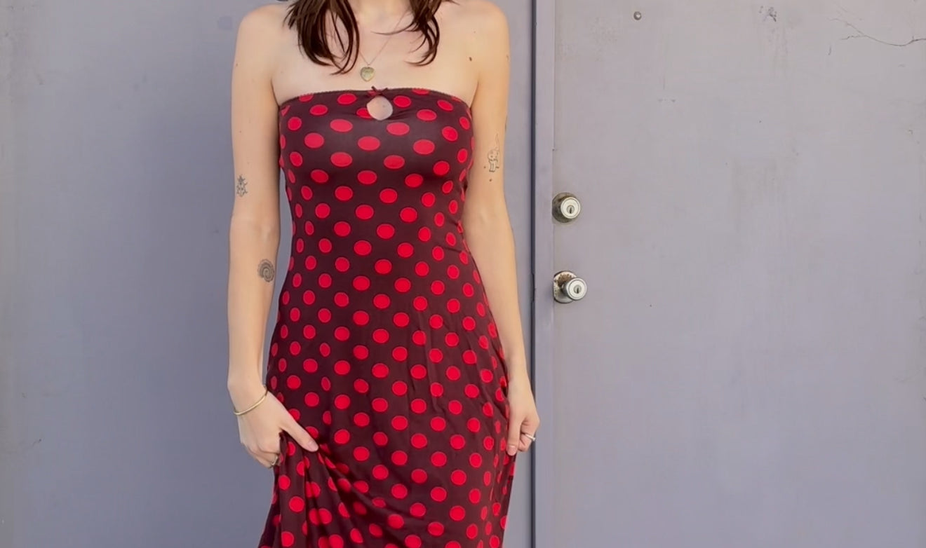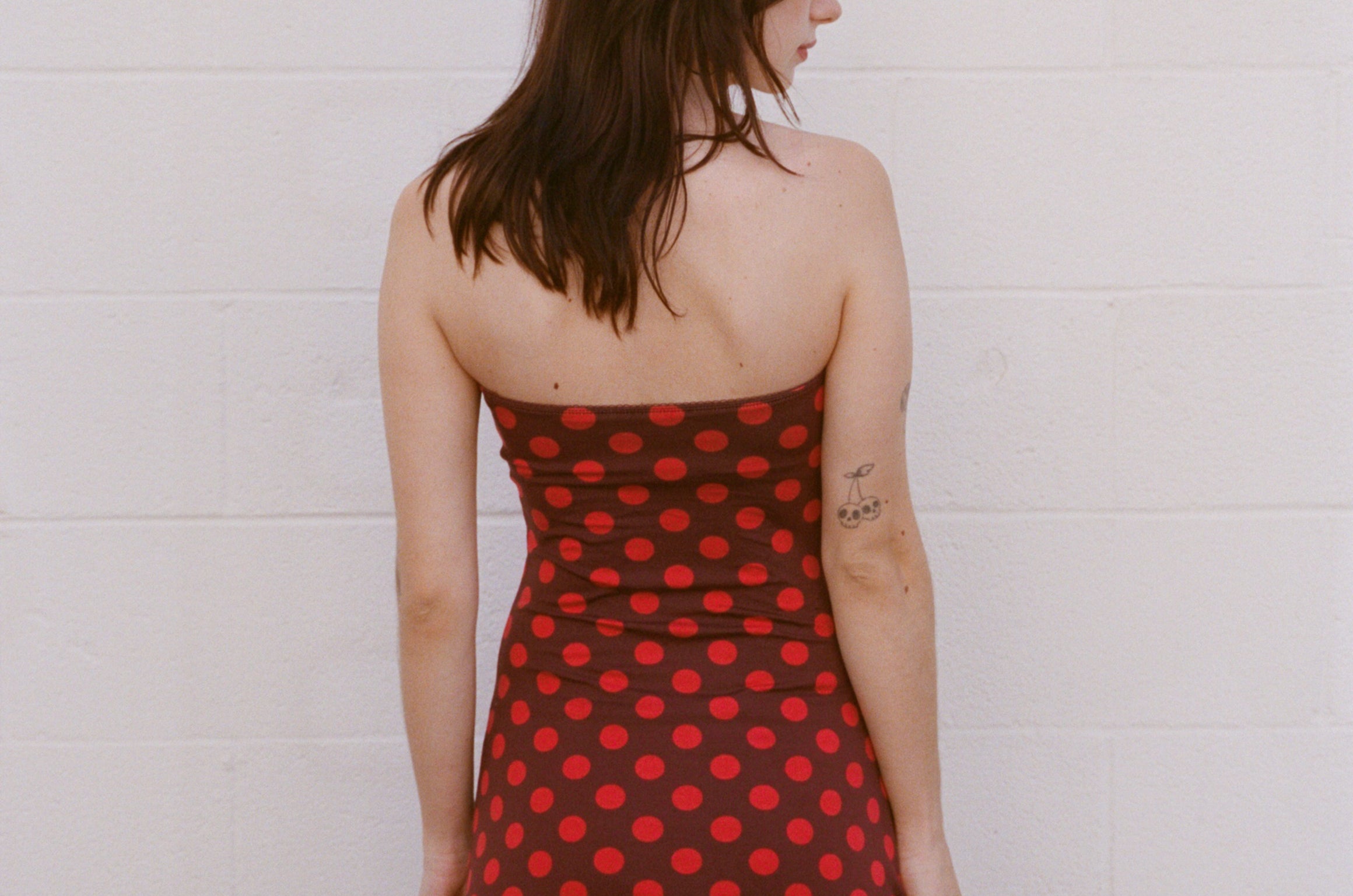 KEYHOLE TUBE DRESS IN SCARLET DOT