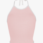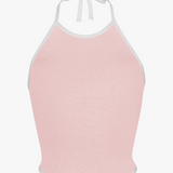 LINED CONTRAST HALTER TOP IN BABY PINK
