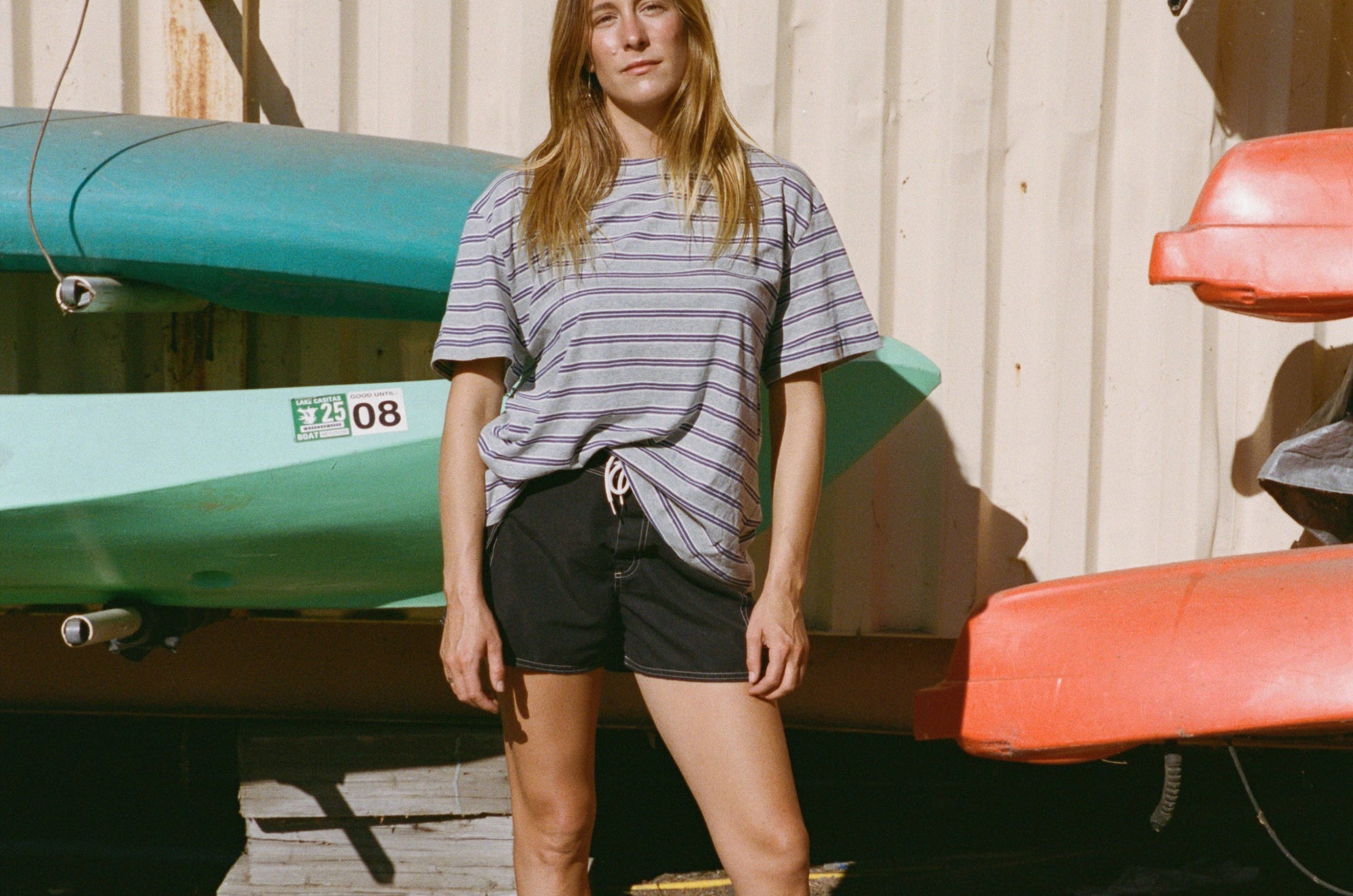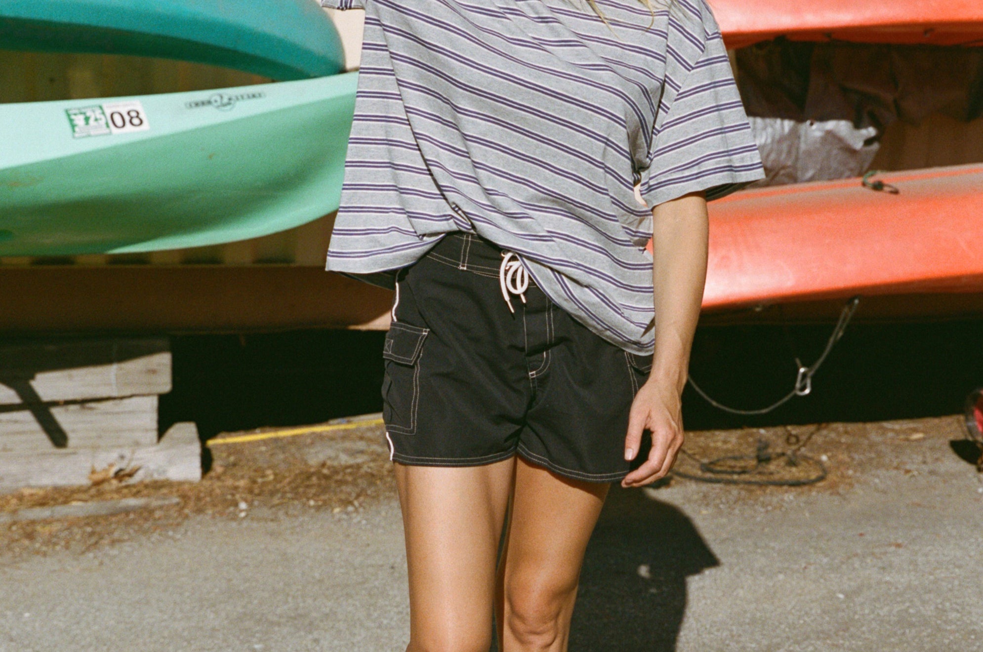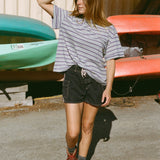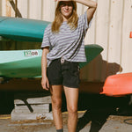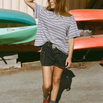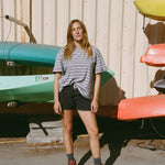 The Boifriend T-Shirt is an easy everyday staple with a relaxed, oversized fit. Made from a lightweight cotton blend, it features a boxy silhouette, pre-rolled sleeves, and a playful stripe pattern with a pop of color. Comfortable and versatile, it’s designed to be worn again and again. Ethically made in Los Angeles.