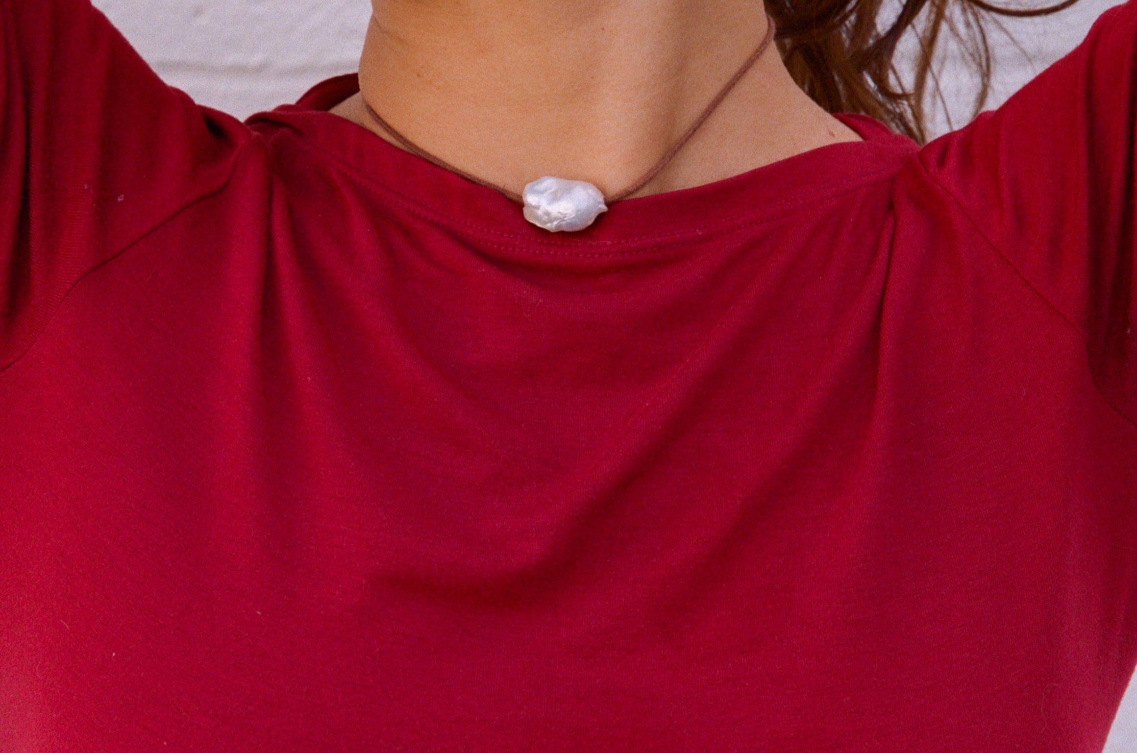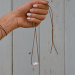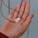 A single baroque pearl on a waxed cotton cord, adjustable from choker length to mid chest level. A small batch exclusive made with love in Ventura, CA by our dear friend, Alix Camp (@earthtoalix)