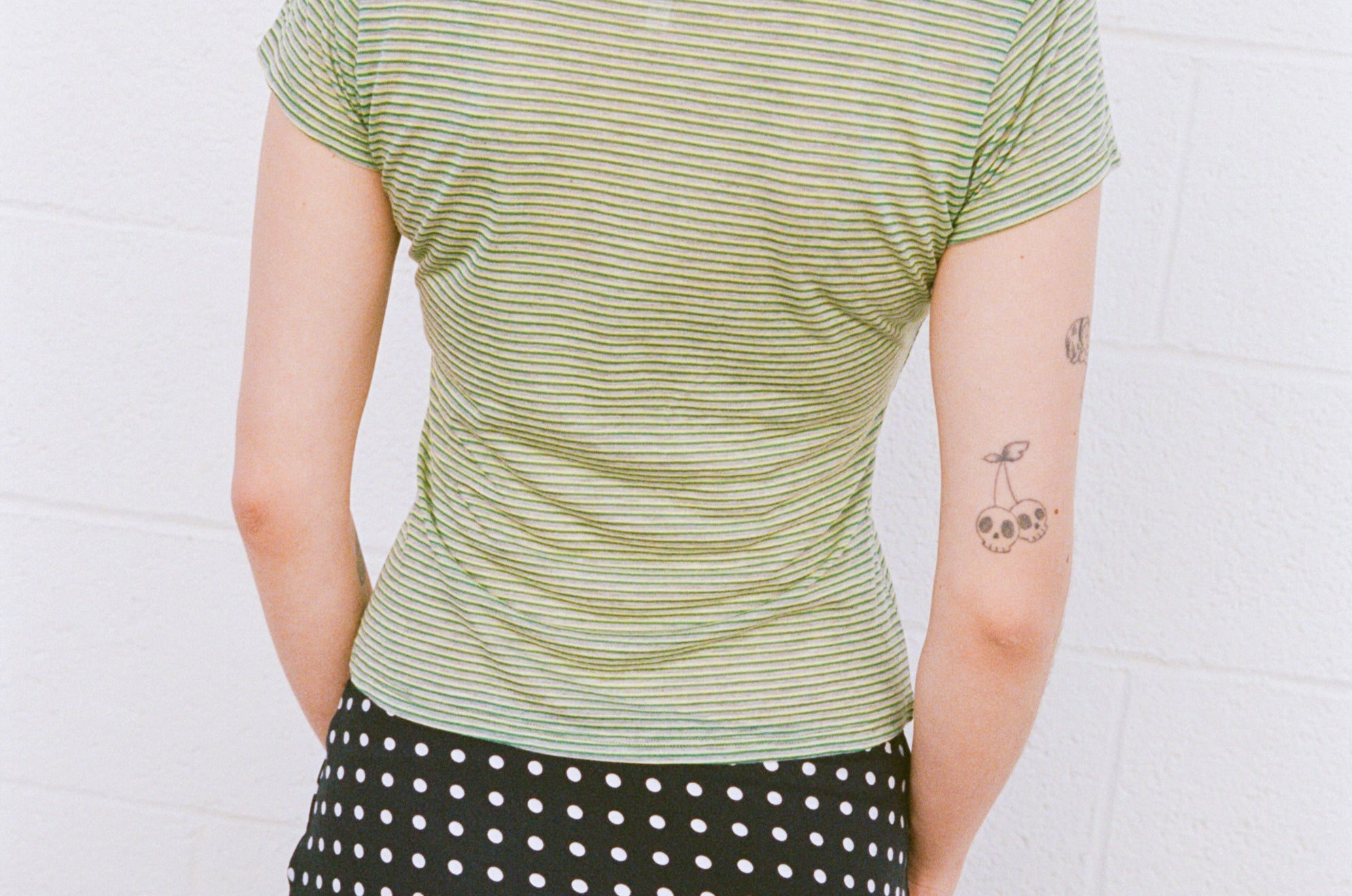Made in Los Angeles from a soft, slightly sheer deadstock stripe blend, this top is effortless and easy to style. Pair it with our Drawstring Lounge Pant for a cozy, lounge-all-day look.