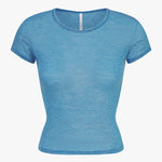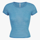 Meet the Perfect T-shirt - slightly fitted, mid-length, and designed to hug you in all the right places. Crafted from an ultralight deadstock fabric, this sheer top offers an incredibly soft and breathable feel, making it ideal for layering or wearing on its own. It hits just above the hips for a flattering everyday fit.