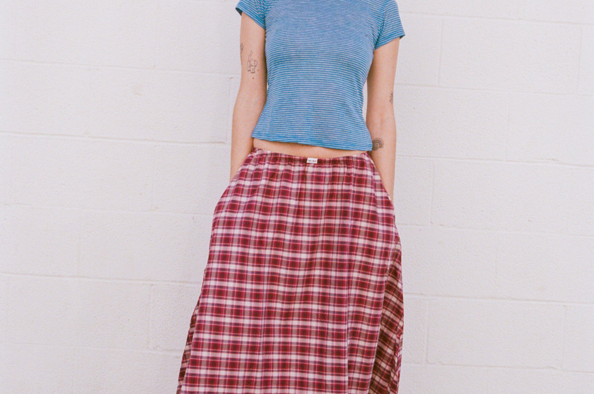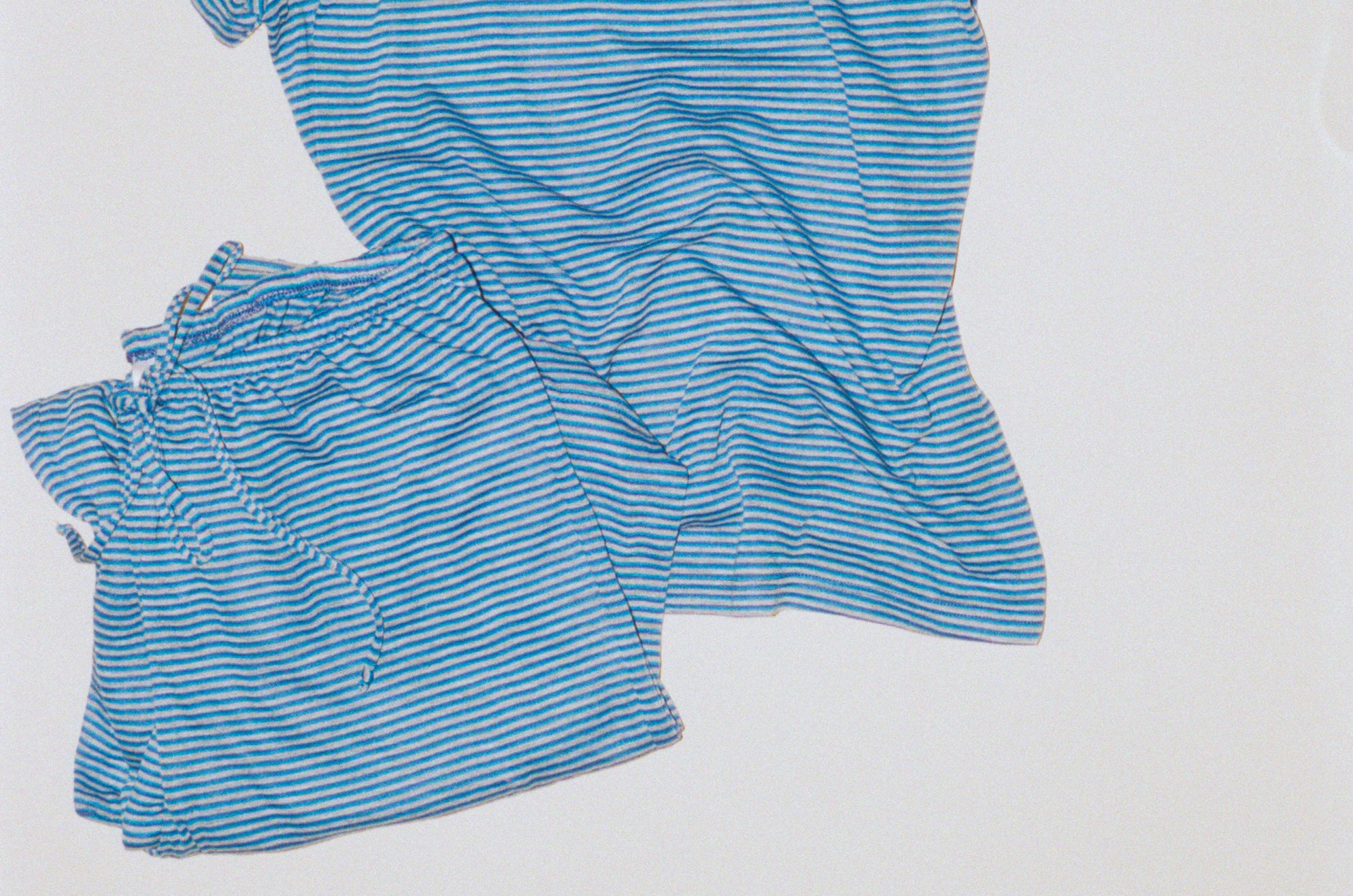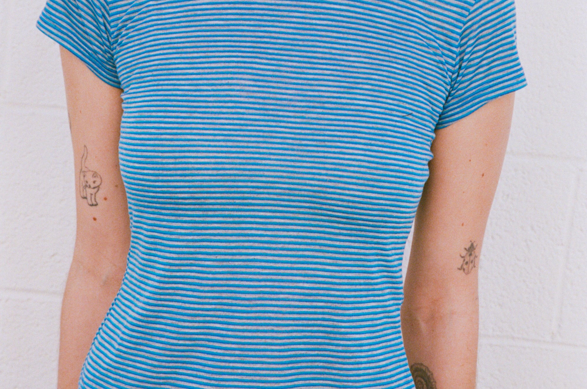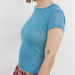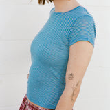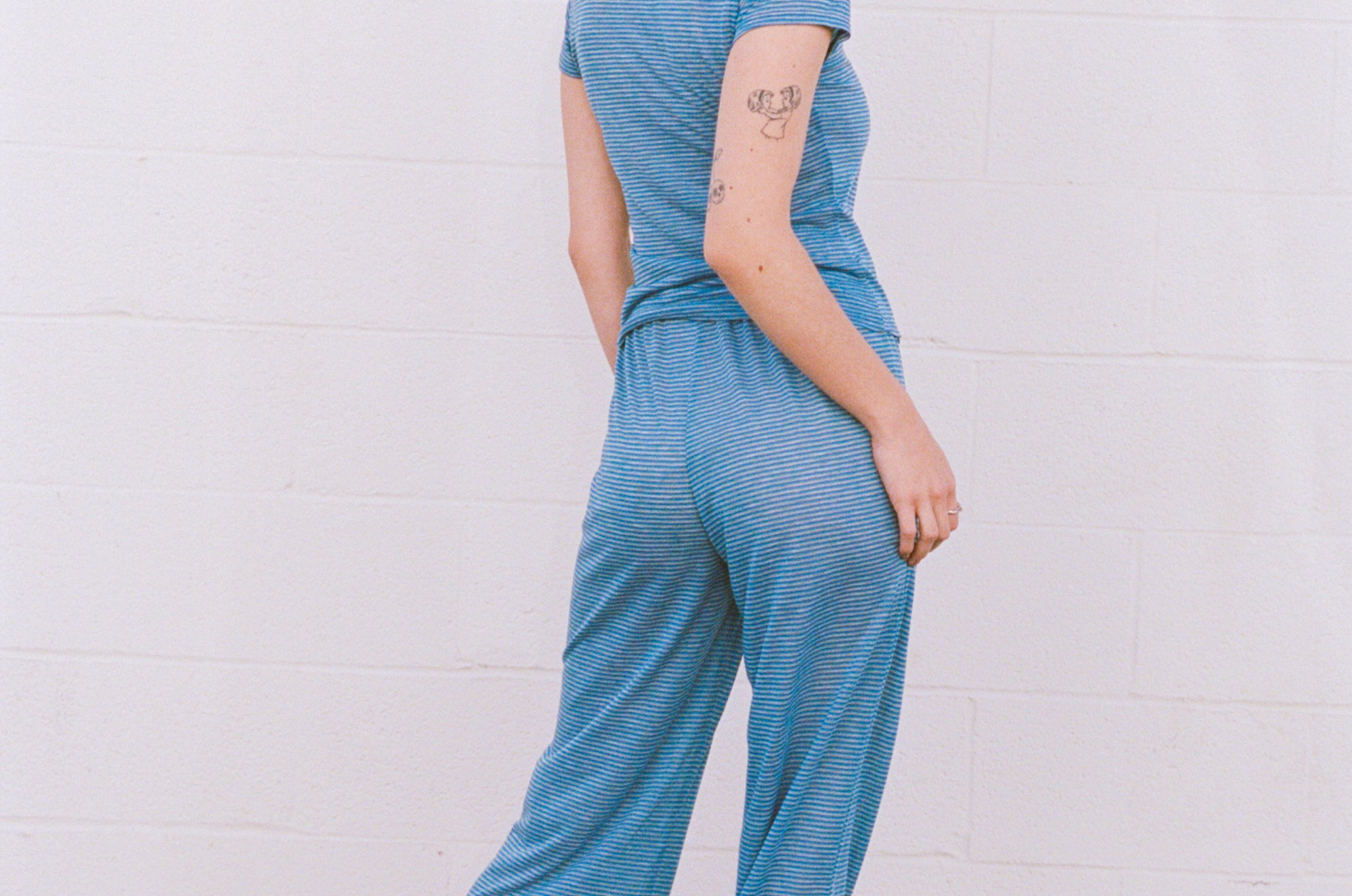 Made in Los Angeles from a soft, slightly sheer deadstock stripe blend, this top is effortless and easy to style. Pair it with our Drawstring Lounge Pant for a cozy, lounge-all-day look.