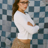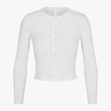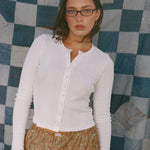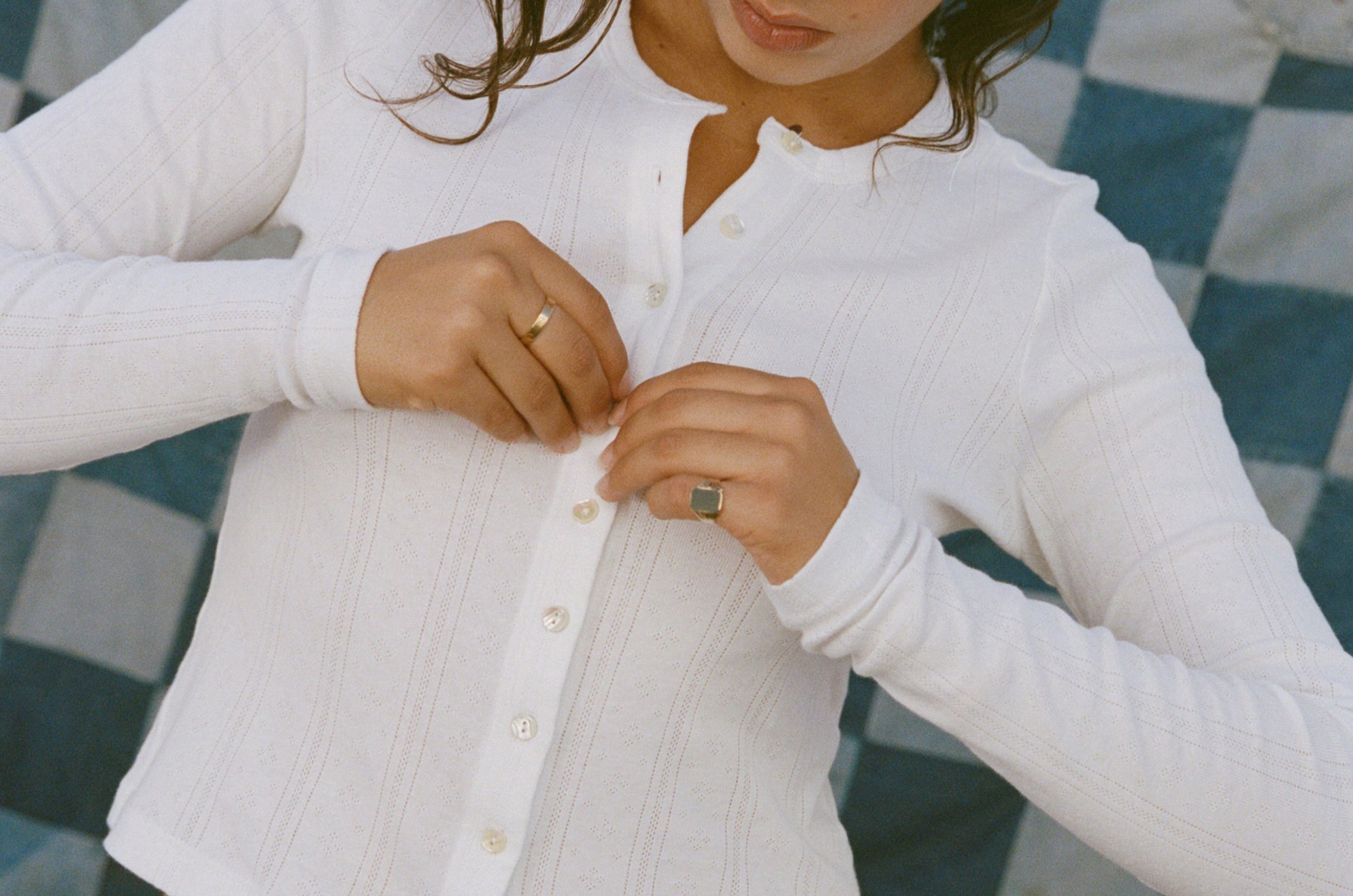 Made from soft, organic breathable cotton knit, our Pointelle Cardigan features pointelle detailing inspired by vintage menswear. Designed in Los Angeles, this cardigan has a slim fit that flares slightly at the hem for a flattering silhouette. The long sleeves provide extra comfort, while the mother of pearl shell buttons add a refined, elegant touch. Perfect for layering or wearing on its own, this cardigan pairs beautifully with our matching pointelle camisole or easy pants for a cozy, chic set. Please note that the Swan color way is slightly sheer.