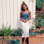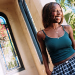 Our scoop back camisole is designed to make an effortless transition from loungewear to a casual going out look. Our signature soft, breathable cotton provides comfortable support for every bust size and cropped hem shows just the right amount of tummy. The deep scoop back is the cherry on top. Each tank top features lace trim and a mother of pearl button at the center. Pair with high waisted jeans and a unbuttoned flannel for a cute summer look.